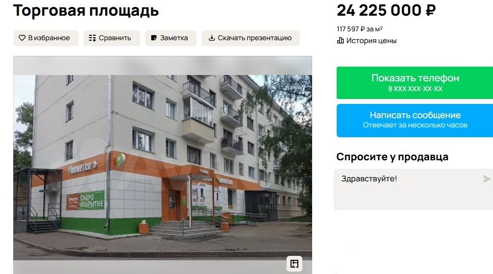 Объявление о продаже помещения за 24 млн 225 тыс. рублей опубликовано на Авито.