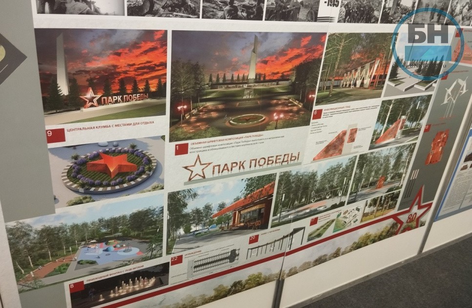 «Основное внимание уделено главной входной зоне в парк со стороны перекрестка улиц Ломоносова и Лепсе. Предполагается установить объемно-шрифтовую композицию «Парк Победы» из стали», – написано в дизайн-плане проекта.
