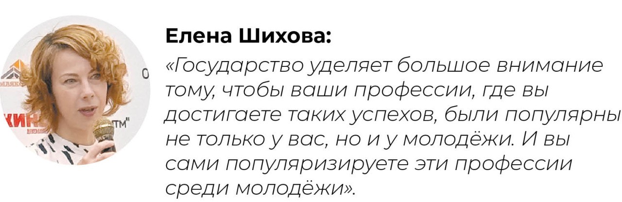 – Государство уделяет большое внимание тому, чтобы ваши профессии, где вы достигаете таких успехов, были популярны не только у вас, но и у молодёжи. И вы сами популяризируете эти профессии среди молодёжи. Спасибо вам за это!