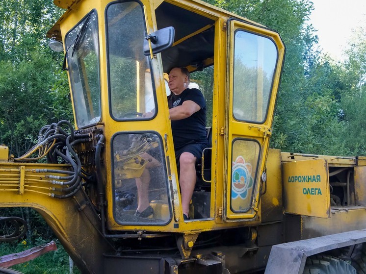 Олег Валенчук решил оценить работу грейдера, Для этого пришлось вспомнить навыки управления трактором – депутат получил права на него ещё будучи студентом Кировского пединститута.