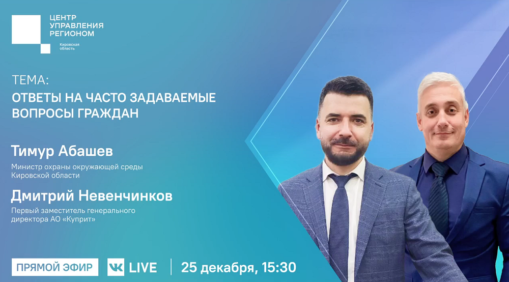 В Центре управления регионом состоялся прямой эфир с министром охраны окружающей среды Тимуром Абашевым и первым заместителем генерального директора АО «Куприт» Дмитрием Невенченковым. Они ответили на часто задаваемые вопросы жителей, связанные с вывозом отходов в праздничный период.