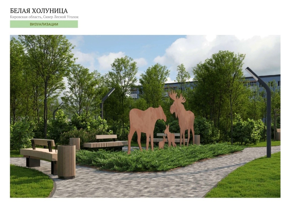 — Это строительство сквера «Лесной уголок» в микрорайоне пятиэтажных домов города. Подрядной организацией выступает ООО «Архидея Групп» (г. Киров). Срок окончания работ — сентябрь 2025 года. Строительство ведётся на внебюджетные средства, — прокомментировала Телицина.