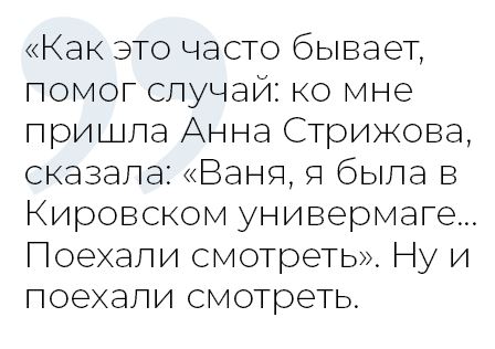 — Примерно через год после открытия «Яйца» у меня появилось желание зайти в центральную, историческую часть города. Год я пытался найти возможности и нужные контакты. Как это часто бывает, помог случай: ко мне пришла Анна Стрижова, сказала: «Ваня, я была в Кировском универмаге... Поехали смотреть». Ну и поехали смотреть. Помещение визуально было страшновато, но привлекала интересная историческая часть, старая постройка 1904 года.