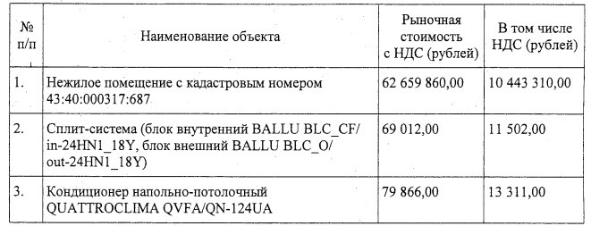 Определён способ приватизации – открытый по составу участников аукцион в электронной форме. Соответствующее постановление опубликовала администрация города Кирова. Начальная цена помещения с движимым имуществом – 62 млн 808 тыс. 738 рублей.