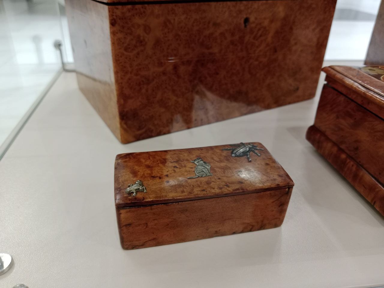 — Самый старый экспонат коллекции датирован примерно 1800 годом. Это павловский ампир, маленькая шкатулка с серебряными изображениями животных, — рассказала старший продавец-экскурсовод Ирина Раева.