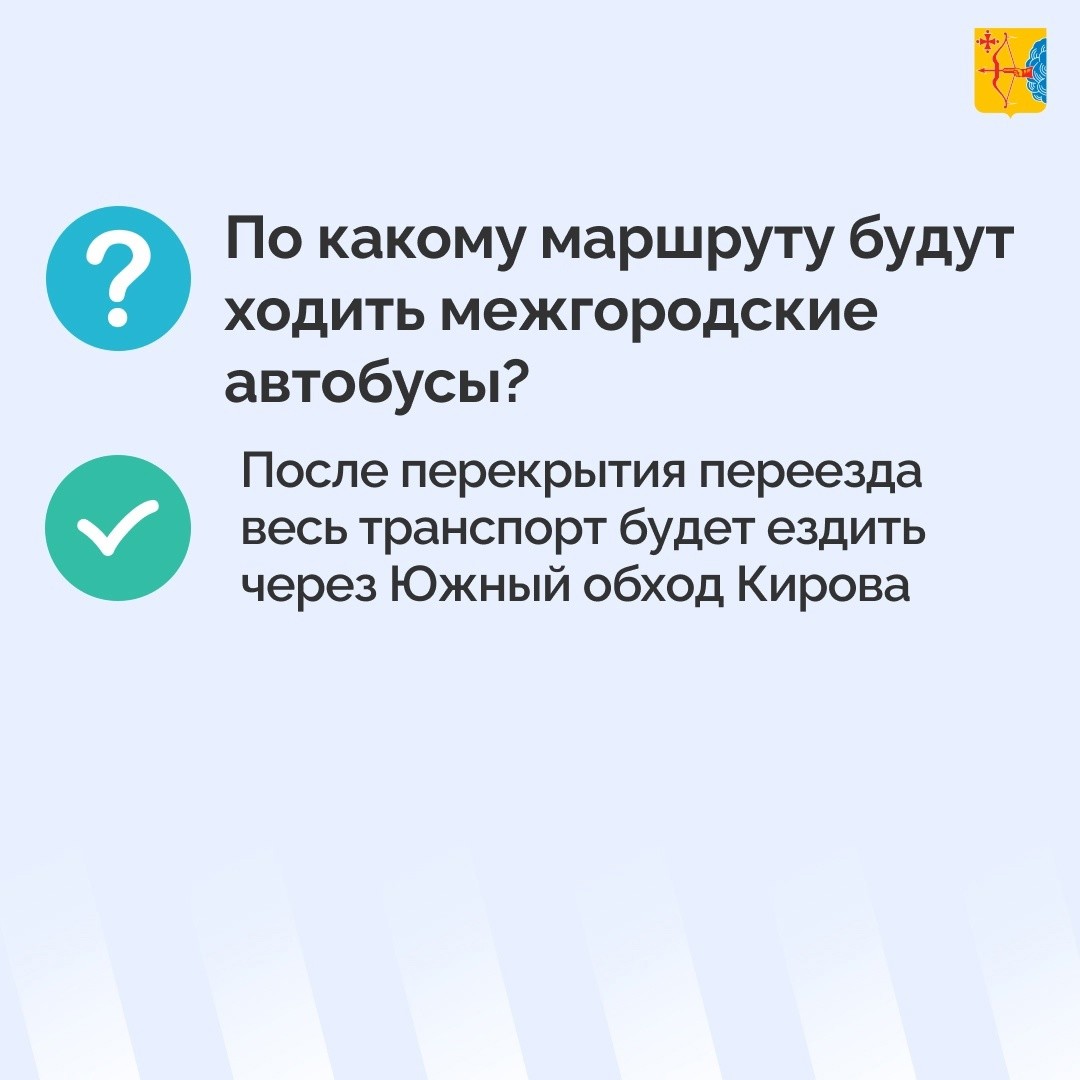Межмуниципальные маршруты пригородного и межгороднего сообщения 103Э, 109, 125, 154, 202Б будут поворачивать с автодороги Киров – Малмыж – Вятские Поляны на Южный обход, затем на обход Радужного, выезжать на ул. Трактовую и далее ехать по существующему маршруту.