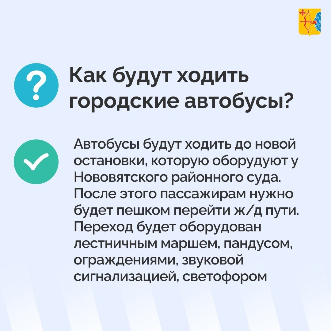 Специалисты дирекции благоустройства администрации города Кирова поясняют, что совместно с сотрудниками ГАИ определены места размещения остановочных павильонов у Нововятского районного суда и на противоположной стороне за железнодорожным переездом, а также для высадки пассажиров на пересечении улиц Советской и Пролетарской.